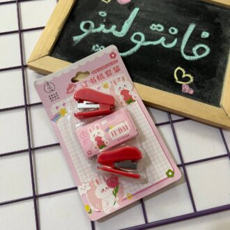 دو عدد منگنه فانتزی به همراه سوزن منگنه در چهار رنگ قرمز، آبی، زرد، مشکی